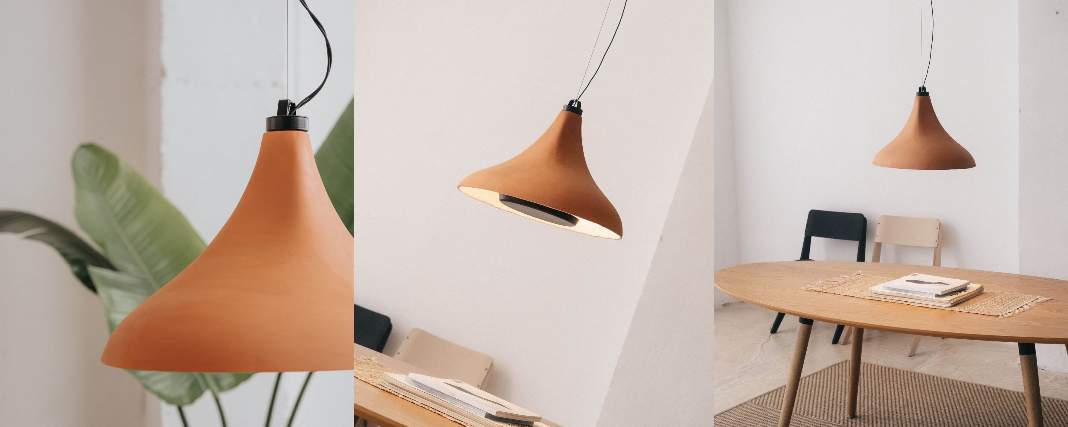 Our lampshades are made from naturally extracted, locally sourced clay. The casting is done in Barcelona's Gothic Quarter, using low-temperature firing as a sustainable alternative to high-temperature ceramics.